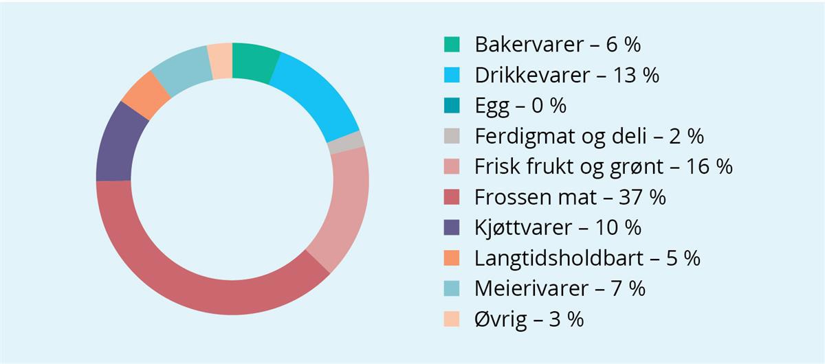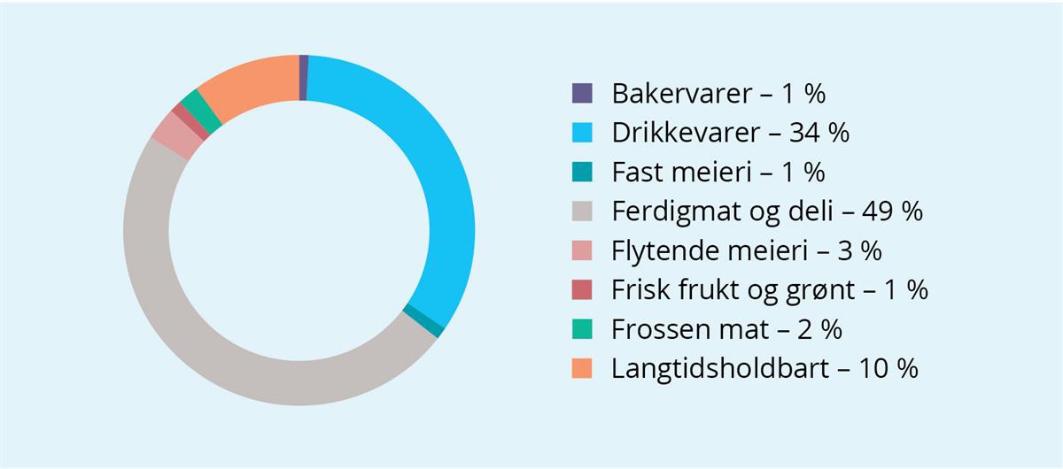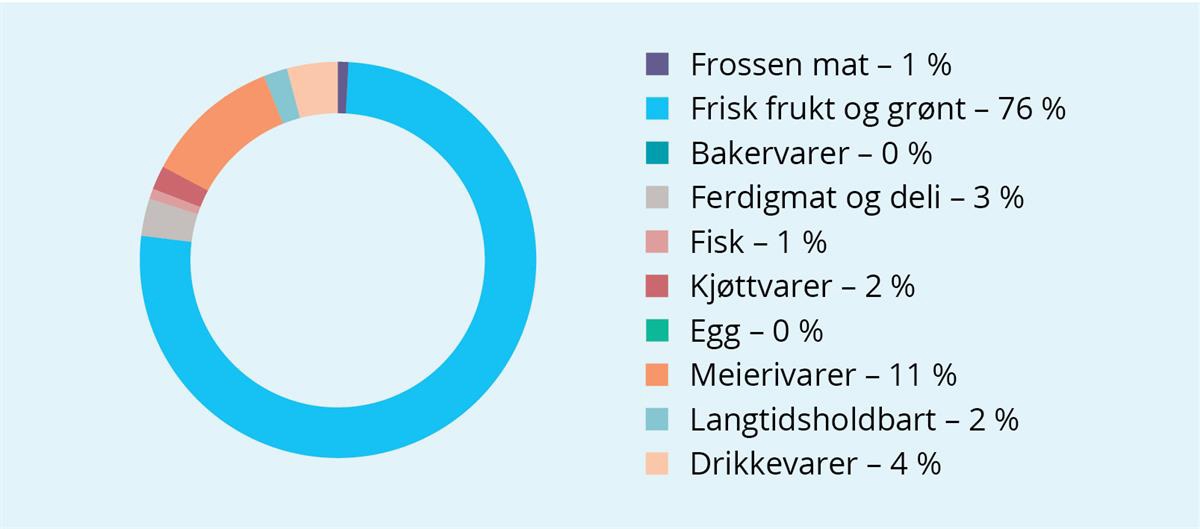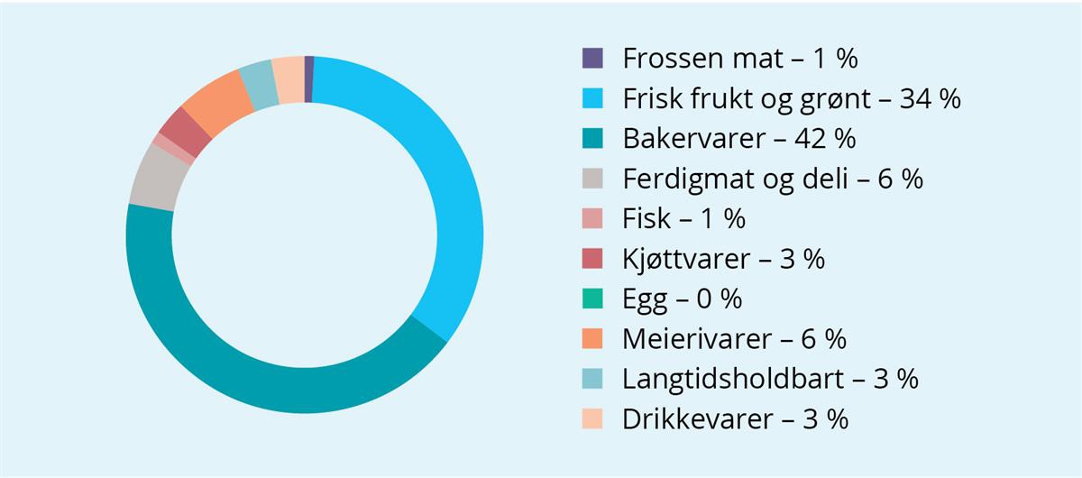 Datagrunnlaget for hvordan matsvinnet fordeler seg for ulike varegrupper er veldig usikkert, men sektorrapporten viser at matsvinnet er størst i varegruppene ferdigmat, frukt og grønt og bakervarer.