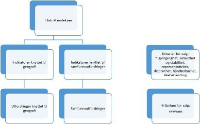Figur 2.1 Figur 2.1 Skjematisk framstilling av distriktsindeksens logikk og oppbygging og kriterer for valg av indikatorer.