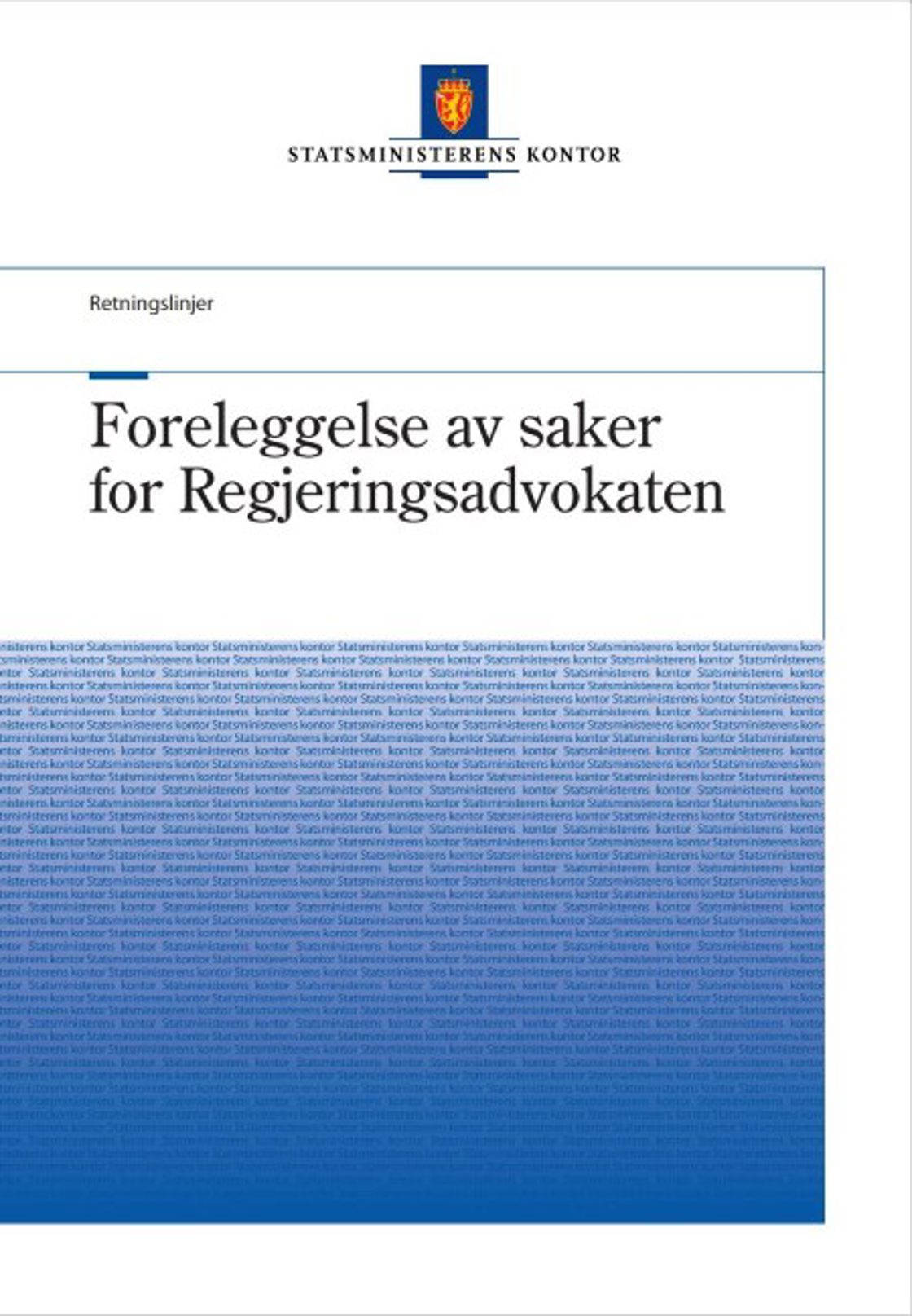 Regjeringsadvokatens oppgave er å føre rettssaker for staten og gi juridiske råd til statlige organer. Disse retningslinjene er veiledende for hvordan rettssaker og rådgivingssaker skal forelegges for Regjeringsadvokaten. De redegjør også for rollefordelingen mellom oppdragsgiver og Regjeringsadvokaten i forbindelse med forberedelse og gjennomføring av hovedforhandlinger og eventuelle ankerunder. Formålet er å sikre felles praksis og en effektiv saksavvikling hos begge parter.