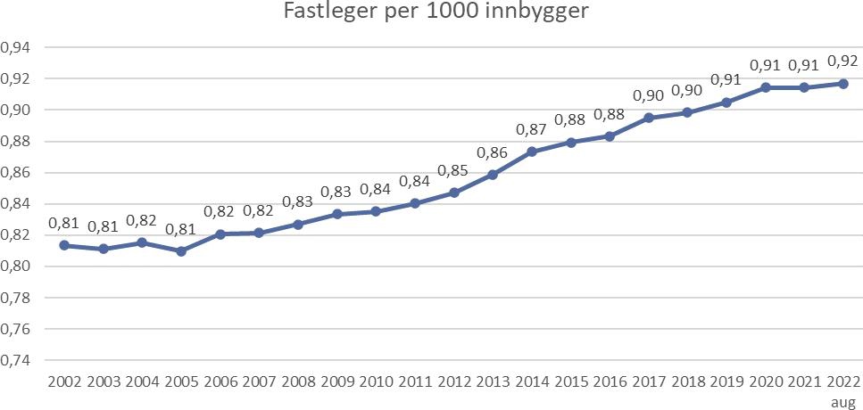 Figur 2-2 Antall fastleger per 1000 innbygger