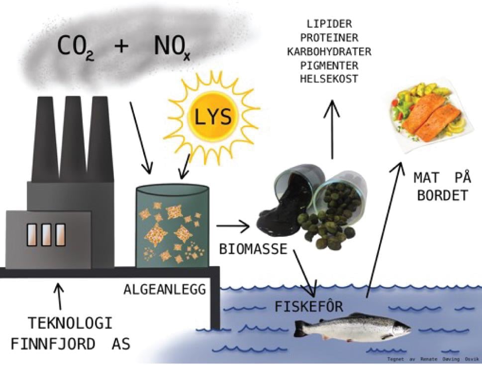 UiT Norges Arktiske Universitet med flere har etablert et samarbeid med Finnfjord smelteverk om å produsere mikroalger som vokser på utslippene av CO₂ og nitrogengasser fra smelteverket. Mikroalgene inneholder næringsrike marine ingredienser og prosjektet ser på hvordan disse kan utnyttes til fôr og som tilsettinger i mat. Målet er å produsere 80 000 tonn mikroalger hvert år. Smelteverket har en visjon om å bli verdens mest miljøvennlige smelteverk, og prosjektet kan ha overføringsverdi til andre industrianlegg med punktutslipp av CO₂.