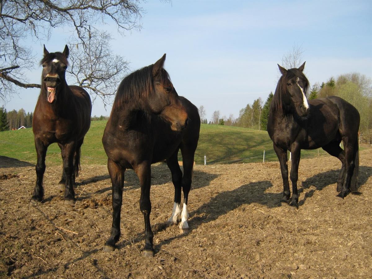 Kilde: Gjespende hest, våken hest og avslappet hest. (Foto: Ingrid Lampe)