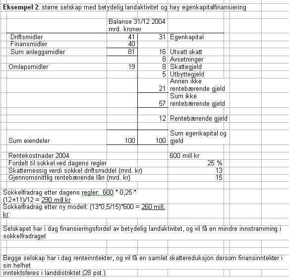 Dersom selskapet tilpasser seg med høy andel rentebærende gjeld, vil skattemessig rentefradrag bli nedjustert i forhold til selskapets faktiske rentekostnader på en mer økonomisk korrekt måte enn i dagens minstekapitalregel. Det rentebeløpet som ikke kan fradragsføres på sokkelen, vil etter de nye reglene kunne fradragsføres i landdistriktet. Dette er en gunstigere løsning for selskapene enn ved avkorting etter dagens regler.
