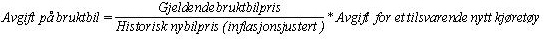 Avgiften som skal pålegges det bruktimporterte kjøretøyet, kan da uttrykkes på følgende måte.: