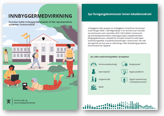 Innbyggeres eller grupper av innbyggeres innspill kan tas hensyn til på mange måter. I denne brosjyren gir vi en oversikt over hvordan syv kommuner som i perioden 2022–2023 deltok i Kommunal- og distriktdepartementets utviklingsprosjekt Lokaldemokratiet i foregangskommuner, arbeidet for å knytte innspill fra ulike typer medvirkningstiltak, til politiske beslutninger i kommunen.