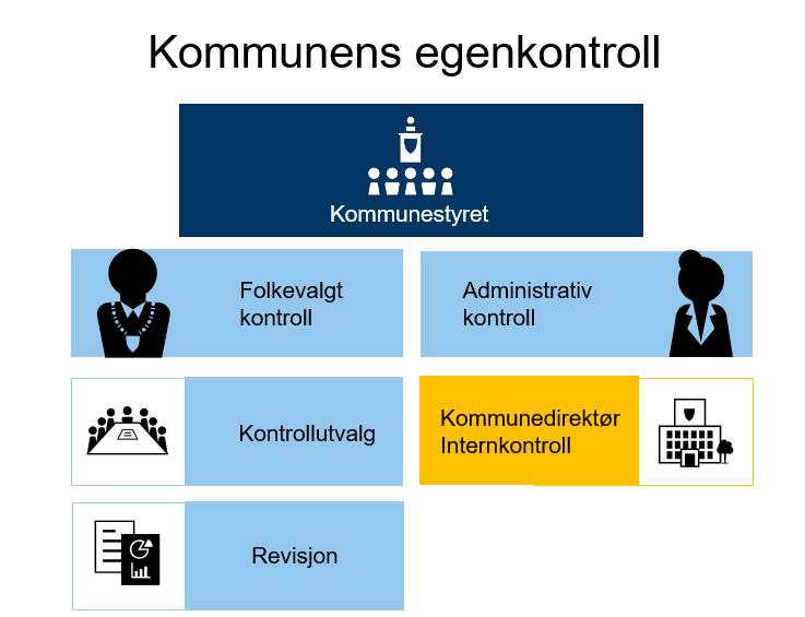 Figuren viser de ulike aktørene som utfører egenkontrollen og internkontrollens plass i den kommunale egenkontrollen.