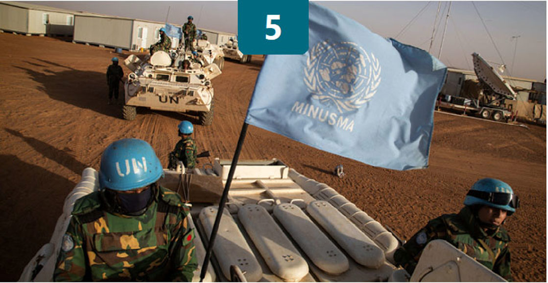 - Bidra til å styrke FNs sikkerhetsråds evne til å forebygge, håndtere og løse klimarelaterte trusler mot internasjonal fred og sikkerhet.