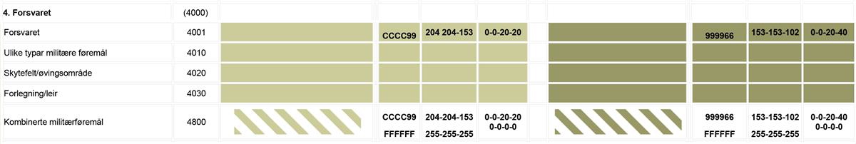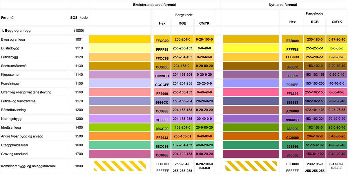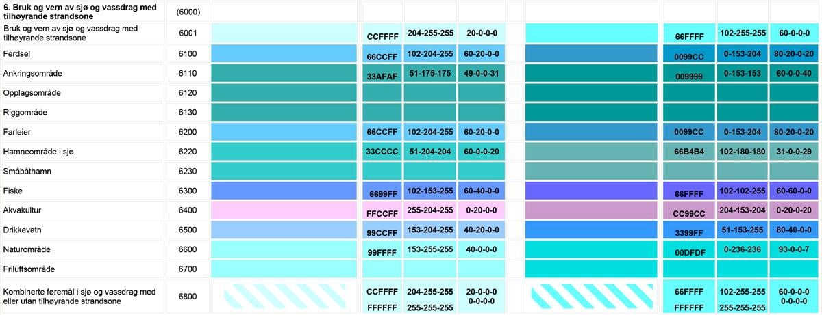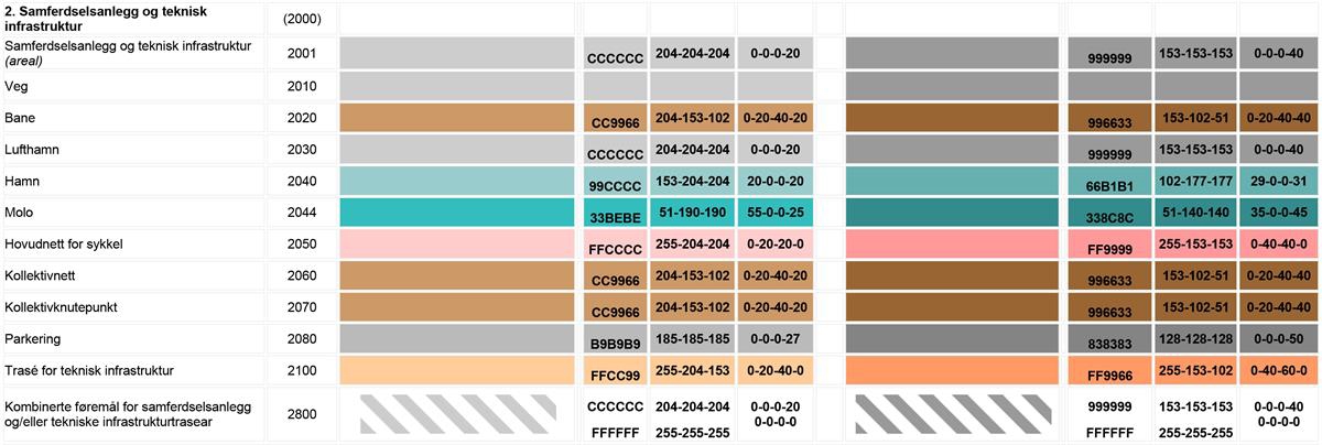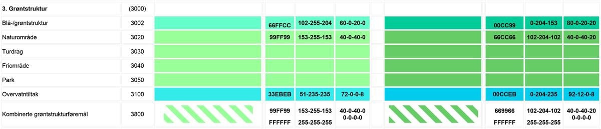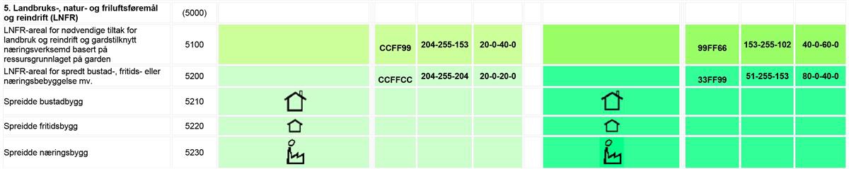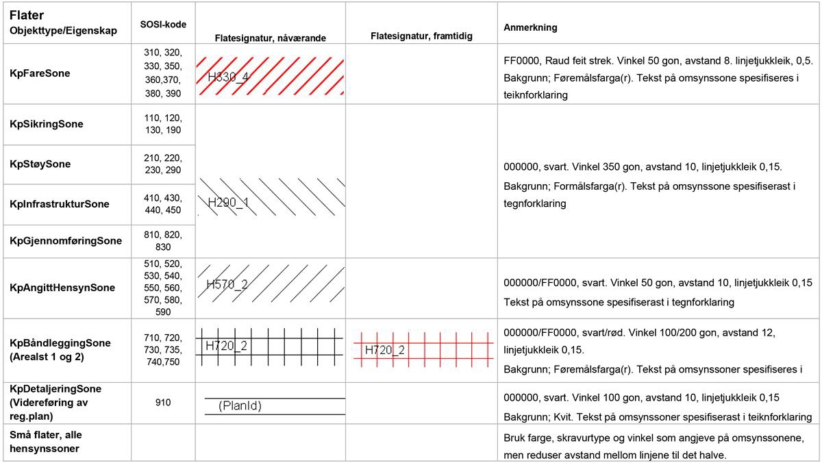 Sjå eit meir detaljert oversyn over teiknereglar i Nasjonal produktspesifikasjon for arealplan (NPAD) med teiknereglar for arealplanar.