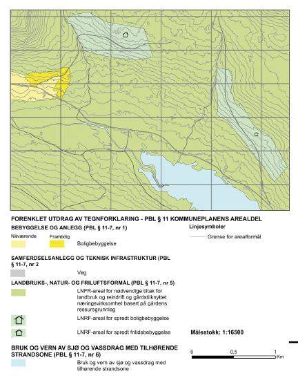 - b) areal for spredt bolig-, fritids- eller næringsbebyggelse mv., jf. § 11–11 nr. 2