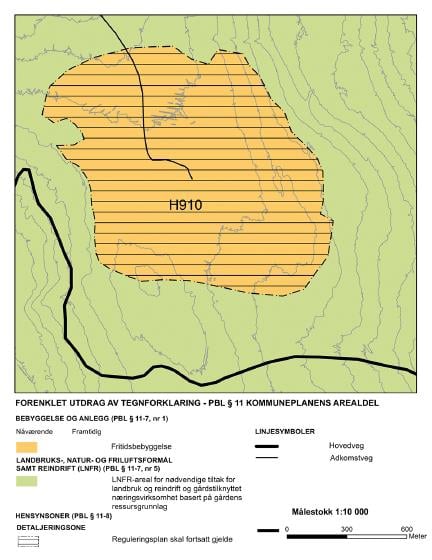 Føresegner om storleik og utforming av fritidsbusetnad etter plan- og bygningslova § 1-9 nr. 5 gjev ikkje i seg sjølv rett til utbygging og påbygging av eksisterande fritidsbusetnad i LNFR-område. Kommunen må bruke LNFR-føremål etter § 11-7 andre leddet nr. 5 bokstav b for å opne for spreidd utbygging i definerte delar av LNFR-områda i kommunen.