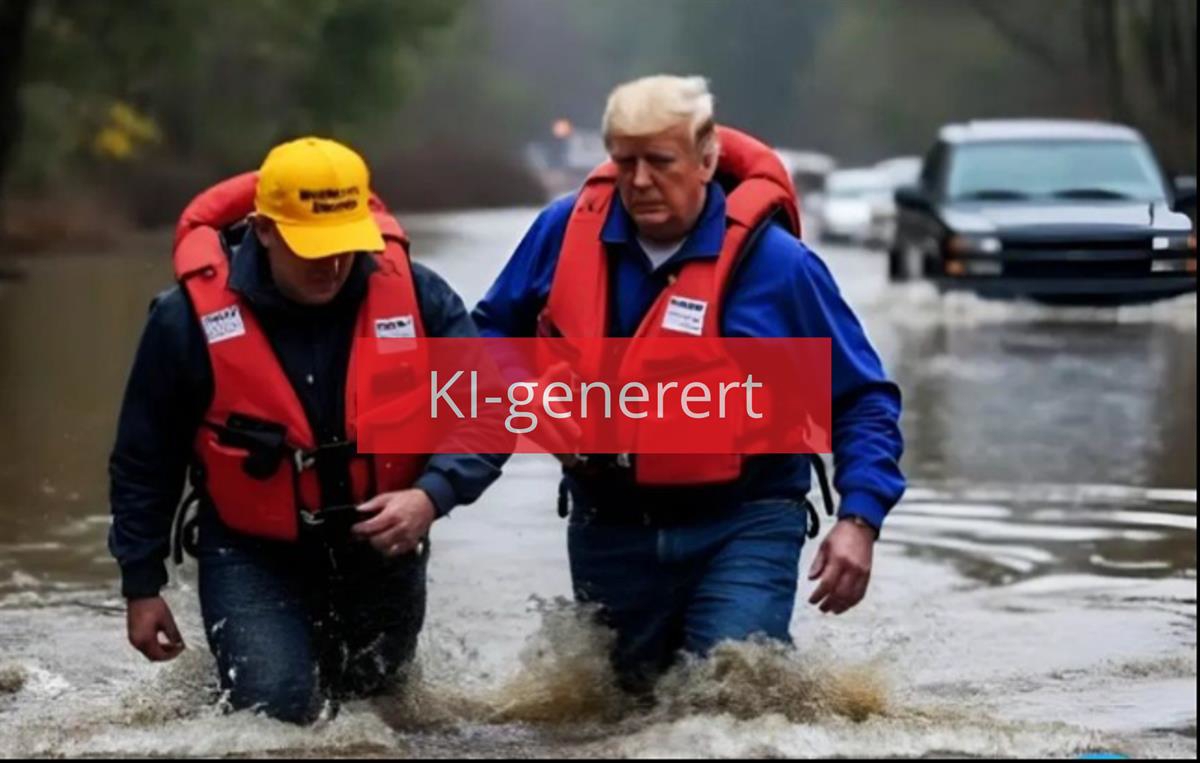 Figur 4.5 KI-generert bilde av Donald Trump som sirkulerte i forbindelse med orkanen Helene. Ekspertgruppens merking.