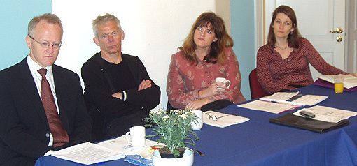 I panelet satt fra venstre ekspedisjonssjef Nils Haugstveit (UD), professor Karl-Ove Moene (Universitetet i Oslo), utviklingsminister Hilde Frafjord Johnson (UD) og koordinator Silje Hagerup (Aksjon Slett U-landsgjelda).
