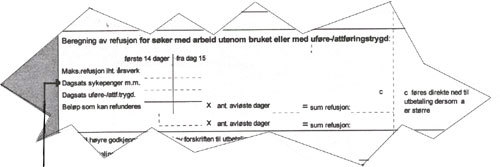 Ved beregning av refusjon for denne gruppen, skal det beløp som framkommer etter ledeteksten «beløp som kan refunderes» benyttes også for helg. Antall avløste dager i viste utklipp fra skjemaet er altså medrekna helg. Denne nye modellen er likevel meget gunstig forhold til forskriften for 1994 (se eksempler i M-1/95).