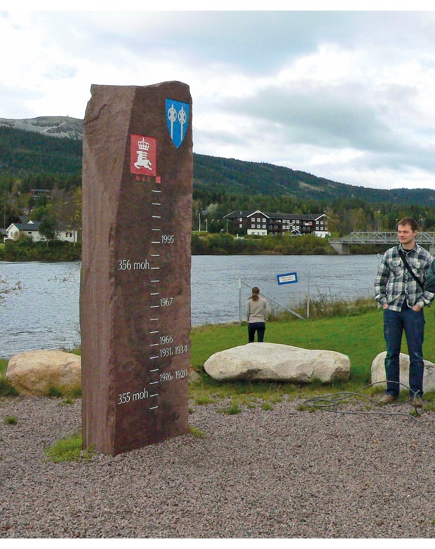 Figur 6.1 Flomstein som viser historiske flommer i Innbygda, Trysil.