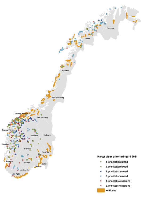 Kartlegging av potensielt skredfarlige kvikkleireområder ble startet opp i etterkant av Rissaskredet i 1978. Slik kartlegging er en todelt oppgave der løsmassene kartlegges først, med etterfølgende grunnboringer og geoteknisk vurdering samt avgrensning av kvikkleiresoner med potensiell skredfare. Det er til nå kartlagt om lag 1750 kvikkleiresoner, hovedsakelig på Østlandet og i Trøndelag. Det er utarbeidet faregrads- og risikokart for disse sonene.