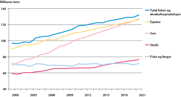Figur 1.4 Fremskrivninger av kjøtt og fiskeproduksjon.