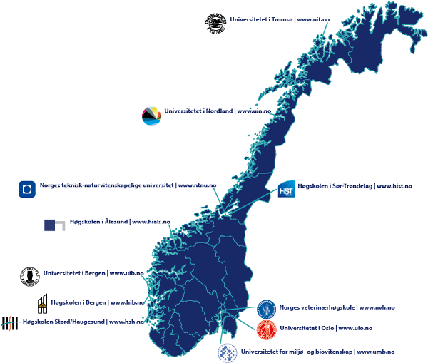 Det er en rekke universiteter og høgskoler som tilbyr marine og maritime udanninger innenfor biologi, marinbiologi, bioteknologi, fiskehelse, økonomi, marin økologi, havbruk, akvakultur, marin teknikk, matteknologi, biomarin innovasjon, nautikk, vannkvalitet og miljø i akvatiske systemer, veterinær, avl og fôr osv.