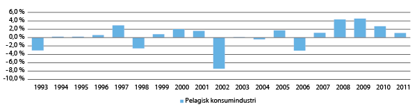 Den pelagiske konsumindustrien har økt sin produksjon betydelig siden midten av 1980-tallet og gir i dag ca. 1 450 årsverk. Veksten skyldes både at kvotene for de pelagiske fiskeslagene og dermed ressurstilgangen for industrien har økt, og at en større del av de pelagiske fangstene har gått til konsum.