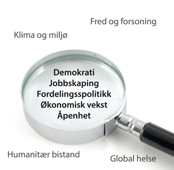 Små forskjeller er bra for samfunnsutviklingen. Respekt for demokrati og menneskerettigheter skaper gode samfunn. Åpenhet skaper trygghet mellom folk og folkevalgte, mellom arbeidsgiver og arbeidstaker, mellom kjøper og selger og mellom samarbeidspartnere på alle nivåer.