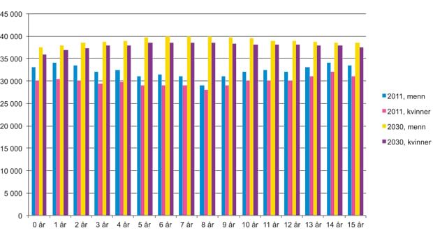 Alder | 2011 | 2020 | 2030 | 2040 | 2050 | 2060 |