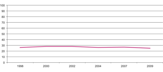 Synovates barne- og ungdomsundersøkelser viser at andelen ungdommer i alderen 13–19 år som oppgir at de trener eller konkurrerer i idrettslag har ligget jevnt på mellom 26 og 28 prosent.