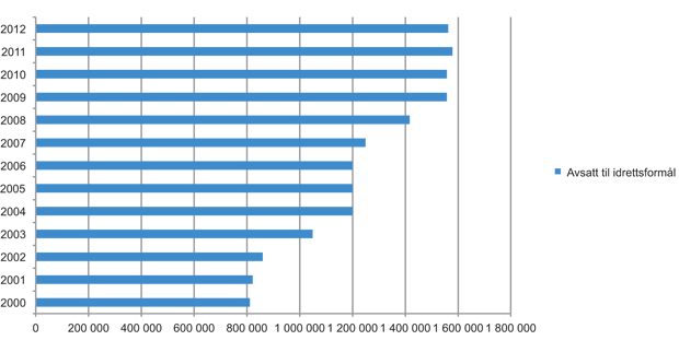 Det har i perioden 2000–2012 vært en betydelig vekst i spillemidlene til idrettsformål. Mens det i 2000 ble tildelt 812 mill. kroner i spillemidler til idrettsformål, er dette beløpet økt til 1 564,1 mill. kroner i 2012. Dersom man tar hensyn til prisstigningen i perioden, utgjør økningen ca 54 prosent. Idrettsformål har i perioden 2000–2012 mottatt ca 16 milliarder kroner i spillemidler.