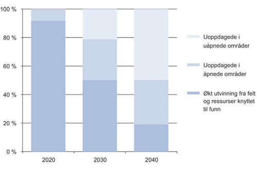 En sentral forutsetning for å videreutvikle petroleumsvirksomheten er at vi har en ressursbase som kan nyttiggjøres. Vi har i løpet av de siste 40 år hentet ut om lag 40 pst. av de forventede utvinnbare ressurser. Vi har produsert en større andel av oljen enn av gassen. 60 pst. av ressursbasen ligger igjen i bakken. I tillegg kommer den del av tidligere omstridt område som ligger vest for avgrensningslinjen i Barentshavet og områdene rundt Jan Mayen. Regjeringen legger stor vekt på oppsidepotensialet når utforskning av våre minst kartlagte områder vurderes.