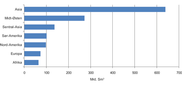 Naturgass er, sammen med kull og olje, de viktigste energikildene verden har. I 2008 utgjorde etterspørselen etter gass over 20 pst. av verdens totale energietterspørsel. De viktigste markedene for gass er Nord-Amerika, Europa, Sentral-Asia og Asia. Gassetterspørselen forventes å øke kraftig framover, jf. figur 3.11. I Asia ventes gassetterspørselen eksempelvis å vokse med 225 pst. fram til 2035. Økonomisk vekst og befolkningsøkning er de viktigste driverne bak denne utviklingen.