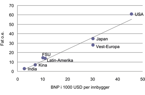 Figur 3.3 Oljeforbruk og brutto nasjonalprodukt per innbygger.