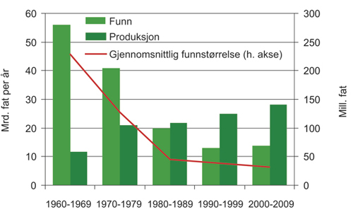 Figur 3.6 Oljefunn og oljeproduksjon.