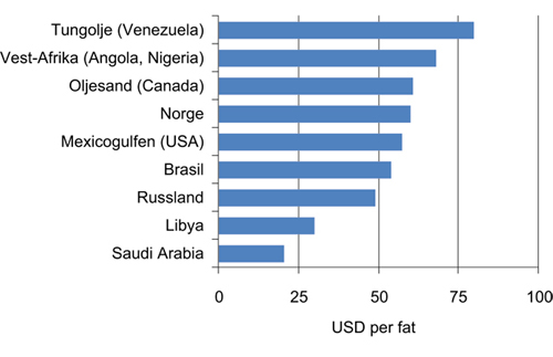 Høye utvinningskostnader i mange viktige produksjonsområder