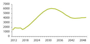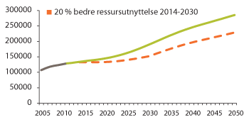 Figur 3.22 Personellbehovet (2012–2050) ved 20 prosent forbedret ressursutnyttelse 2014–2030 (illustrasjon)
