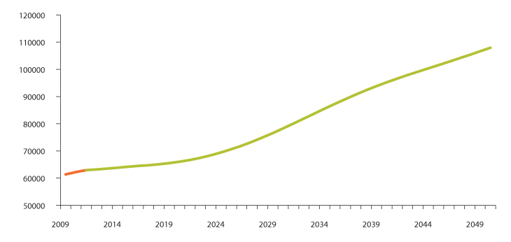 Kilde: Statistisk sentralbyrå 2012. Middelalternativet (MMMM) i befolkningsframskrivningene.