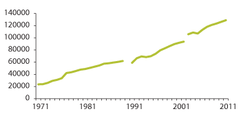 Figur 3.4 Årsverk i omsorgstjenesten 1971–2011