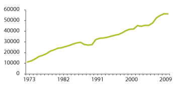 Figur 3.5 Brutto driftsutgifter i faste 2000-priser for pleie og omsorg 1973–2010
