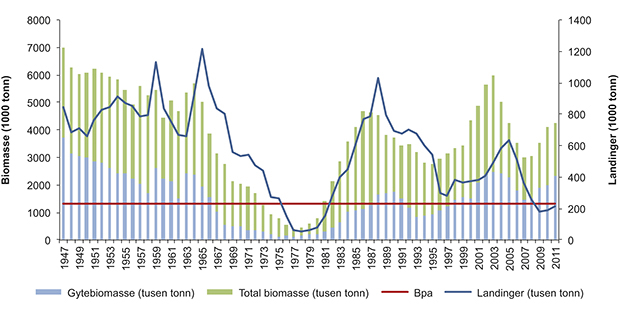 Tidligere har beskatningen på flere bestander i Nordsjøen vært for stor. Dette, sammen med naturlige svingninger og klimaendringer, har ført til at enkelte bestander enten har kritisk lav gytebestand eller risiko for at bestandene ikke høstes bærekraftig. Havbunnen er mange steder påvirket av bunntråling. Særlig langs kanten av Norskerenna, der samme område kan tråles opptil 20 ganger i året, er sammensetningen av bunnfaunaen endret.