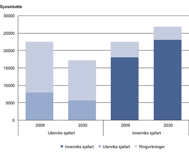 Skipsfarten har i Norge også stor betydning for den innenlandske godstransporten. Hovedtendensen er at sjø og veg er totalt dominerende med markedsandeler på til sammen over 90 % den siste femårsperioden. I 2010 hadde sjø (eksklusive oljetransportene fra kontinentalsokkelen) 42,4 % av innenlandsk godstransport.