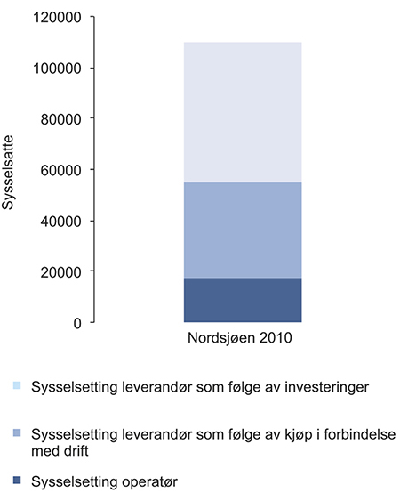 Resultatene viser at utredningsområdene med stor utbygging, langt fra eksisterende infrastruktur på land (nett og havner) eller på dypt vann, har den beregnete største nasjonale verdiskapningen. For Nordsjøen gjelder dette Sørlige Nordsjø I og II og Utsira nord. I disse områdene er den nasjonale andelen av den totale verdiskapningen for utvikling av det første området beregnet til i overkant av 60 millioner kr per MW over vindkraftverkets livsløp og nasjonal sysselsetting beregnet til om lag 50 årsverk per MW. NVE anslår i konsekvensutredningen at gjennomsnittlig antall årsverk per år vil være om lag 150 i det minste området (Frøyagrunnene) og 900 for det største av områdene (Sørlige Nordsjø II). Nær 80 % av dette arbeidskraftsbehovet forventes imidlertid å komme i byggefasen. Antall sysselsatte i havvindanlegg i de ulike utredningsområdene i forhold til antall sysselsatte i den tilhørende økonomiske regionen, vil være avgjørende for hvor betydningsfull en utbygging vil være for det lokale næringslivet.