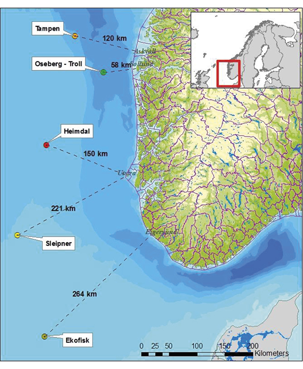 Områdespesifikke faktorer, som for eksempel værforhold, reservoarforhold, vanndybde, bunnforhold, rasfare, jordskjelvsfare, skipstrafikk | Det forventes noe høyere temperatur og noe mer nedbør som igjen kan medføre noe mer ekstremvær. Det forventes at reservoartrykket vil avta etter hvert som et felt produserer. Det vurderes ikke som spesielt sannsynlig å finne nye felt med høyere reservoartrykk, andre -egenskaper eller -størrelse. Utfordringer relatert til sand- og vannproduksjon kan imidlertid øke for modne felt. Havbunnsinnsynkning, særlig i sørlige del av Nordsjøen, forventes fremdeles å være en relevant faktor. Skipstrafikk forventes å øke. Forsyningsfartøyene forventes å bli større, med mer bruk av bulbbaug. Tiltak for å forbedre sjøsikkerheten (overvåking og innføring av regulering av skipstrafikken) kan kompensere for de negative effektene av økt skipstrafikk. |