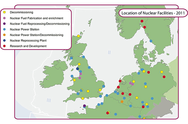 Figur 6.6 Nukleære installasjoner i nordsjøområdet