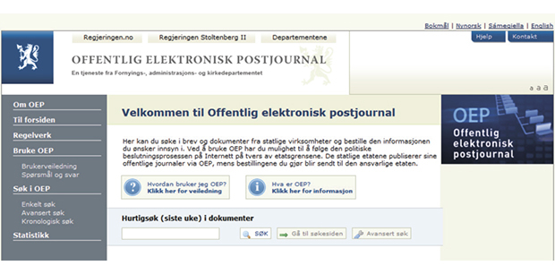 Figur 2.1 Inngang til offentleg elektronisk postjournal. www.oep.no