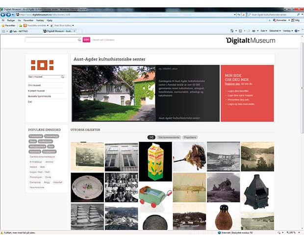 Figur 2.11 Skjermbilde frå Aust-Agder kulturhistoriske senter/Digitalt Museum