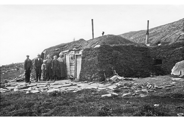Figur 2.13 Boliggamme laga av torv i Kistrand. Kistrand kommunes arkiv 1845 – 1914 har vorte anerkjent som ein del av Noregs dokumentarv på bakgrunn av ca. 240 dokument på kvensk og 120 på samisk som finst i arkivet.