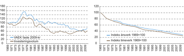 I de seinere årene har investeringsnivået i jordbruket vært vesentlig mindre enn på 1970- og 80-tallet. Samtidig er jordbruket inne i en fornyingsfase for en del av investeringene fra denne perioden, og investeringsvolumet har økt igjen etter 2002. Tall fra NILFs driftsgranskinger viser at gjeld per bedrift har økt betydelig og i gjennomsnitt var på ca. 1,7 mill. kroner i 2008. Gjeldsgrad og gjeld er høyest for brukere under 35 år og faller med økende alder. Gjelda for de yngste er i gjennomsnitt om lag 3 mill. kroner per foretak. Gjeld og gjeldsprosent øker også med økende størrelse på foretaket. Gjeldsprosenten er høyest i Agder, Rogaland og i Nord-Norge. Støtte gjennom investeringsvirkemidler dekker i dag en mindre andel av kapitalbehovet enn tidligere og dette bidrar også til å redusere mulighetene til risikofylt toppfinansiering. Økt gjeldsmasse gjør at næringen er mer sårbar for endringer i rammevilkårene, herunder endring i rentenivået.