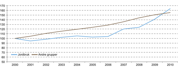Fra 2006 til 2010 var lønnsveksten for andre grupper knapt 21 pst., eller i 74 900 kroner. I jordbruket økte inntekten med 57 ½ pst., eller 91 000 kroner per årsverk, iflg. Normalisert regnskap utarbeidet i 2011. Satsene i avløserordningene for ferie/fritid, og ved sykdom, er økt vesentlig og det er etablert en landsdekkende landbruksvikarordning i regi av Norske landbrukstjenester.