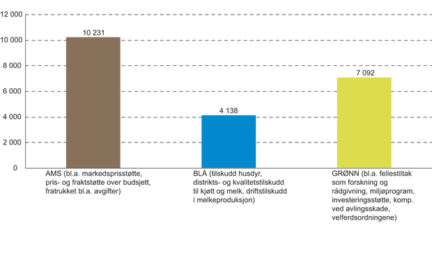 Landbruket er viktig for det norske samfunnet. Realverdien av overføringene til gjennomføring av jordbruksavtalen over statsbudsjettet er redusert med om lag 30 pst. siden 1980. Med de eksternt gitte rammebetingelsene er målene for landbrukspolitikken ambisiøse. I internasjonal sammenheng vil Norge måtte ha et relativt høyt samlet overføringsnivå dersom målene skal kunne nås.