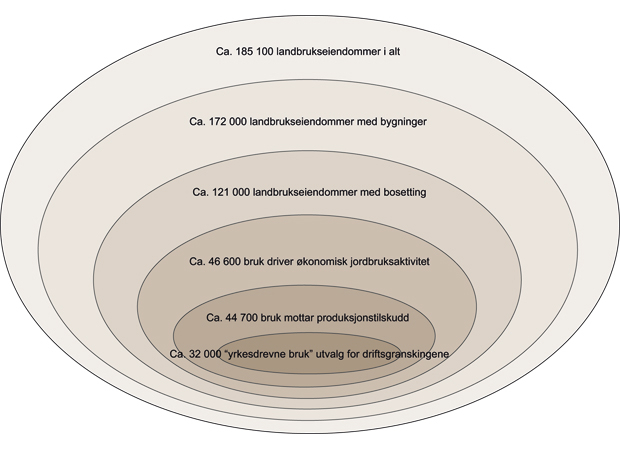* De tre innerste sirklene betegnes av SSB og NILF som jordbruksbedrifter