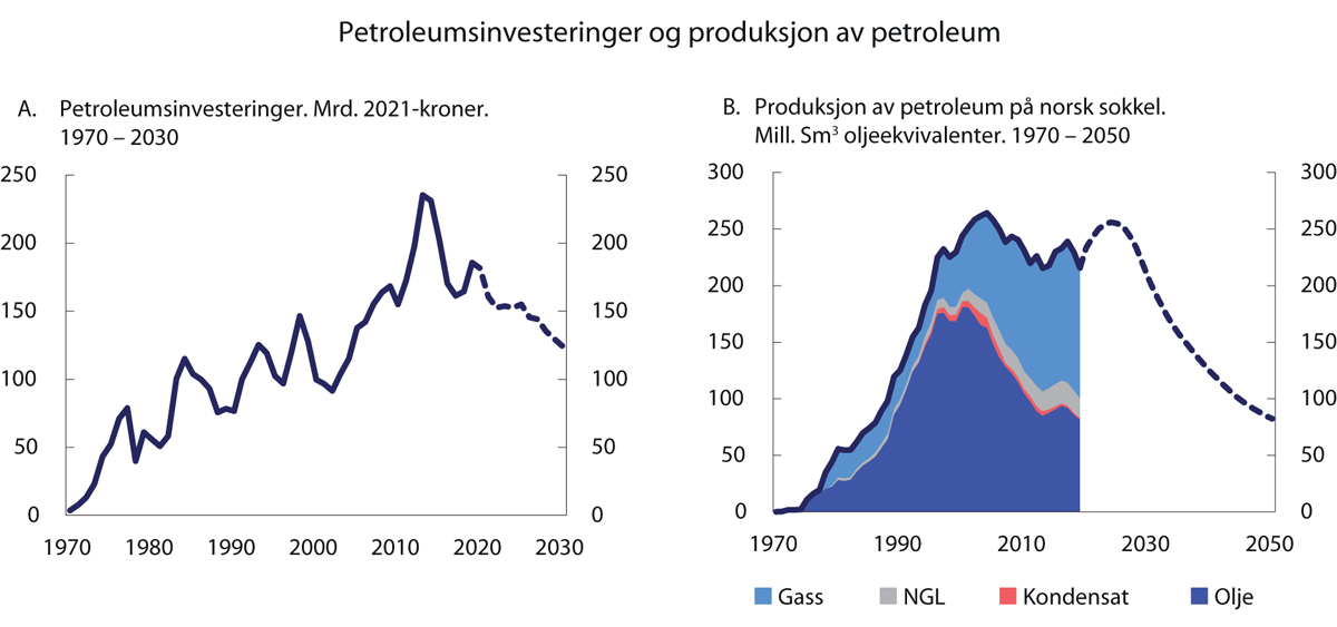 Figur 2.11 Produksjon av petroleum og petroleumsinvesteringer