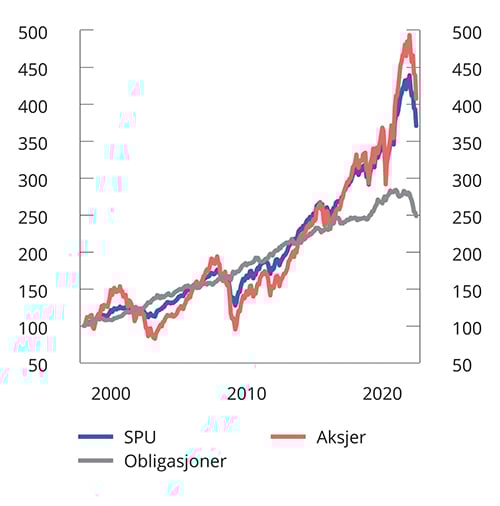 Markedsverdien av SPN ved utgangen av første halvår 2022 var 315,0 mrd. kroner. Det er 17,9 mrd. kroner lavere enn verdien ved inngangen til året. Fondets aksjeportefølje hadde en markedsverdi på 186,4 mrd. kroner ved utgangen av første halvår, tilsvarende 59,2 pst. av fondskapitalen. Den resterende kapitalen var investert i rentebærende papirer. Avkastningen var -5,4 pst. målt i norske kroner i første halvår 2022. Aksjeporteføljen fikk en avkastning på -4,4 pst., mens obligasjonsporteføljens avkastning var -7,3 pst.