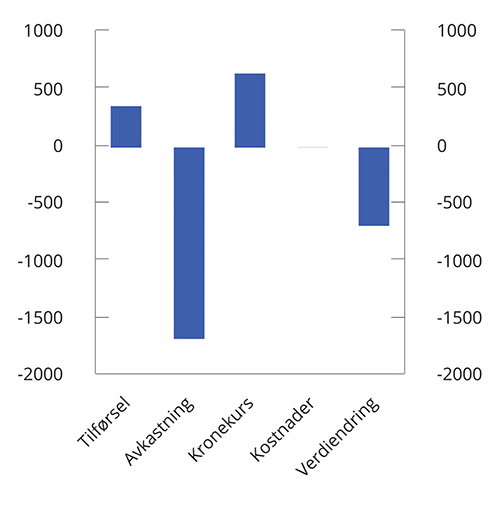 Figur 7.3 Bidrag til verdiendring i SPU i første halvår 2022. Milliarder kroner